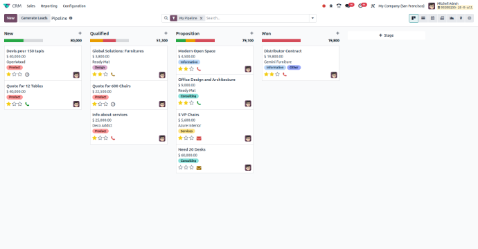 Odoo automatically scores leads and assigns them to the right salesperson. This helps teams focus on the best sales opportunities.