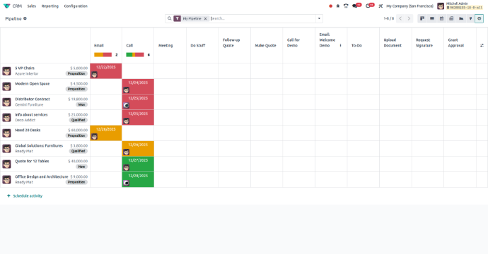 Odoo CRM keeps all meetings and sales activities in one calendar. This makes planning and organizing meetings easy.