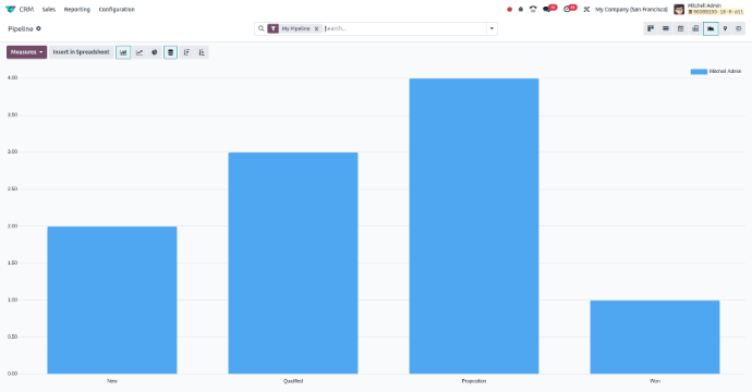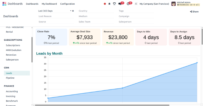Odoo CRM shows sales data in a clear and visual way. This helps users understand business performance easily.