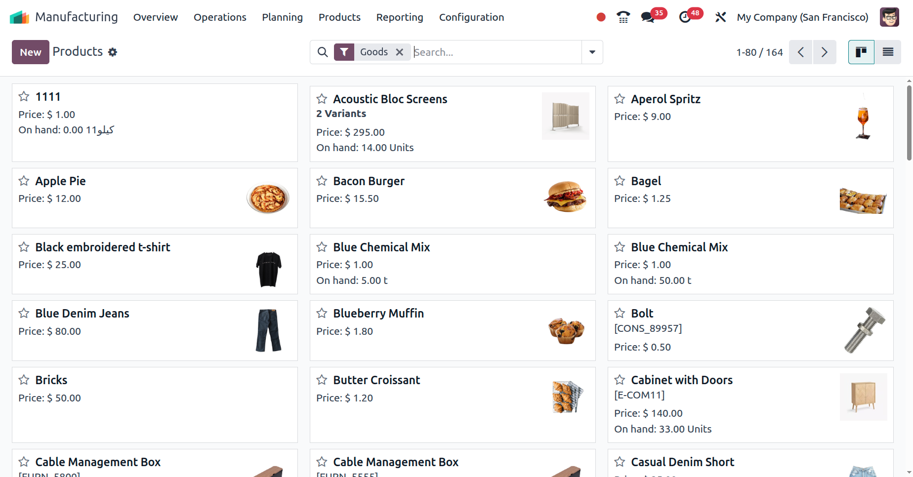 Odoo manages detailed information about each product, including descriptions, categories, pricing, and inventory levels.