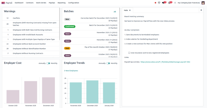 The Employee Payroll module in Odoo provides a comprehensive platform for managing payroll processes efficiently and accurately.